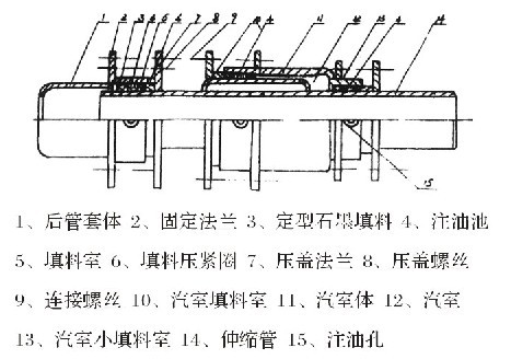 在國內(nèi)近期,生產(chǎn)出LTW高溫堵漏劑,它的耐溫30O——600℃,工作極限壓力是10MPa。鞏義市鑫科管道設(shè)備廠將高溫堵漏劑應(yīng)用在補(bǔ)償器上,將直流式無推力補(bǔ)償器,改制成注油式直流介質(zhì)無推力補(bǔ)償器,解決了補(bǔ)償器長期工作,出現(xiàn)微小的滲漏問題。鞏義市晨光波紋管公司將LTW高溫堵漏劑,用60MPa。的高壓注射槍,將油劑注射到填料室內(nèi),使填料與料室內(nèi)徑和伸縮管外徑壓緊,油劑本身無毛細(xì)管,又有熱脹冷縮的性質(zhì),故造成補(bǔ)償器長期工作中,不產(chǎn)生滲漏。